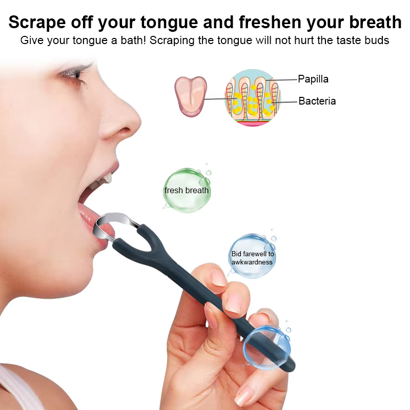 The action not only cleans the tongue but also promotes better tasting and fresher breath by reducing the bacterial load responsible for halitosis.