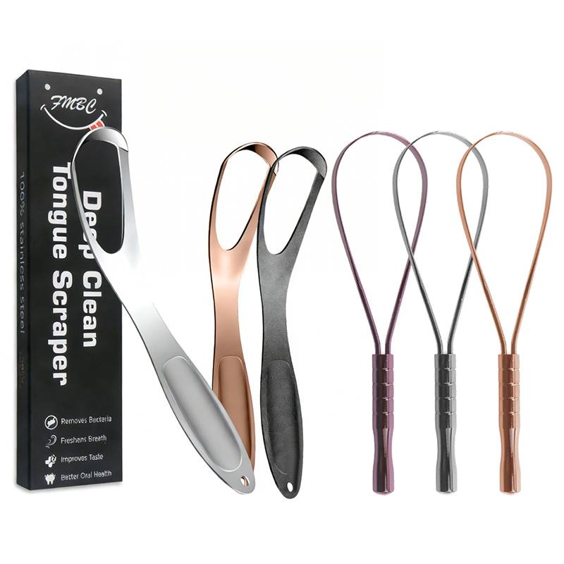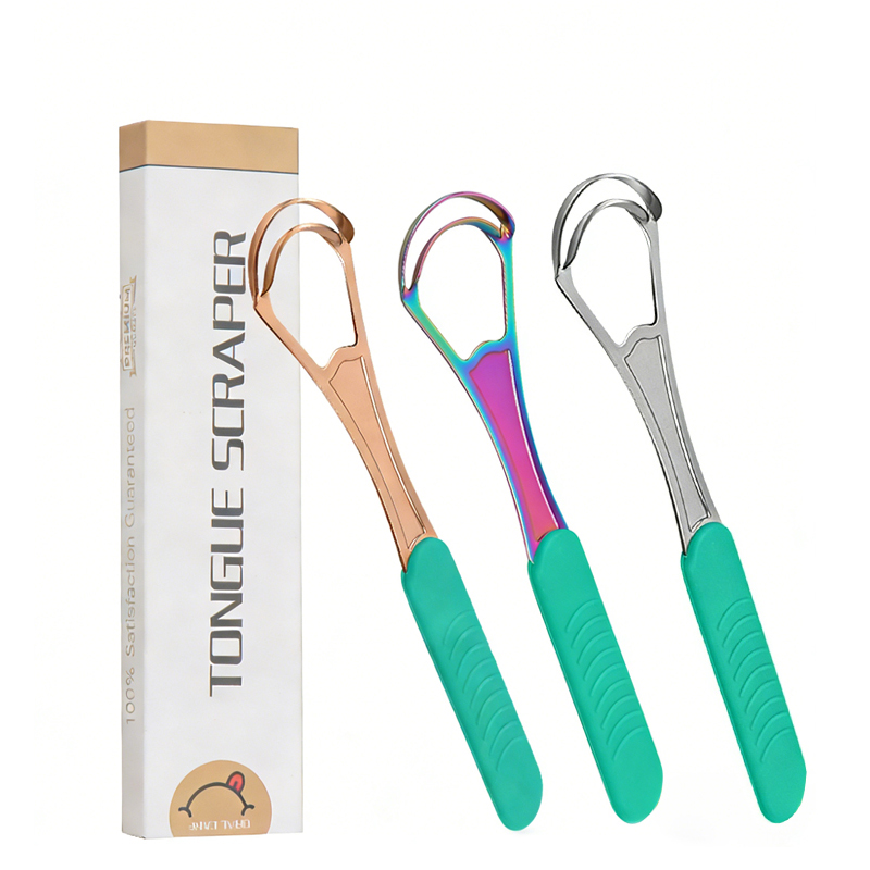 A tongue scraper is an oral hygiene tool specifically designed to remove bacteria, food debris, and dead cells from the surface of the tongue. It typically consists of a slim handle and a cleaning edge made of materials such as stainless steel or medical-grade plastic.